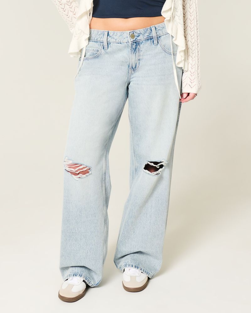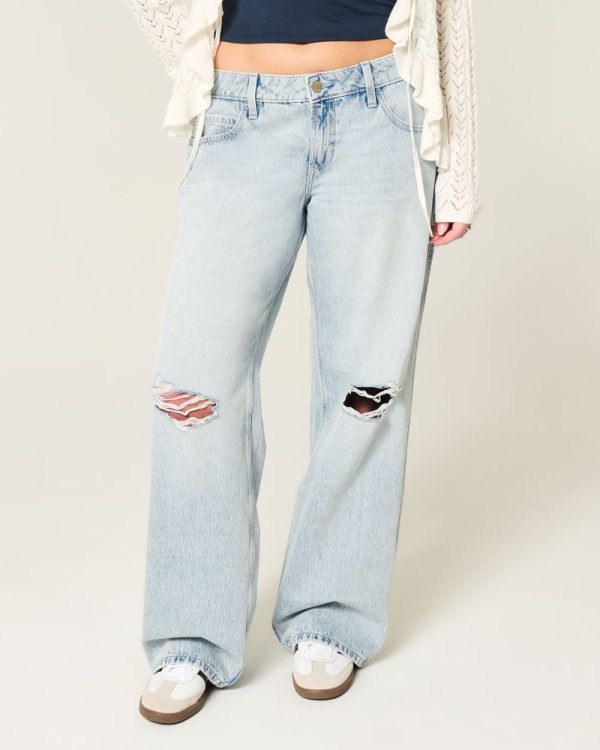 Women’s Low-Rise Ripped Light Wash Baggy Jeans