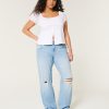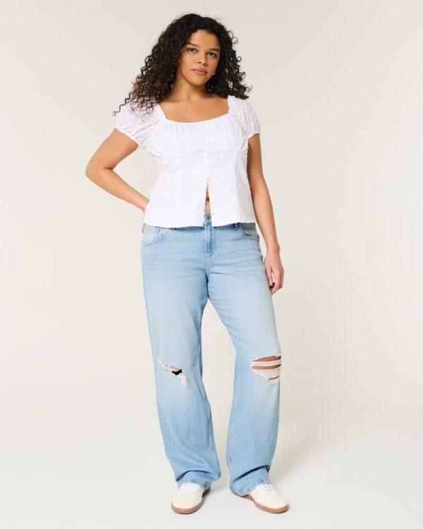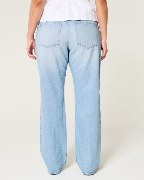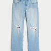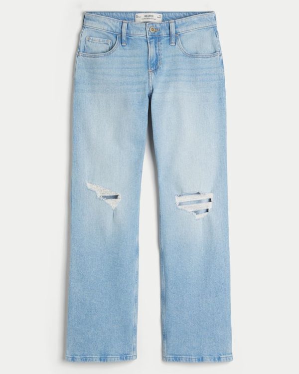 Low-Rise Ripped Light Wash Relaxed Straight Jeans
