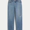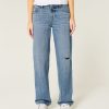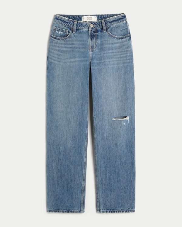 Low-Rise Ripped Medium Wash Loose Jeans