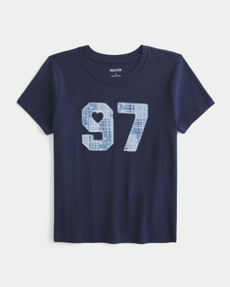 A super soft baby tee featuring butterfly pattern filled number graphic applique. Slightly shrunken silhouette, short sleeves, crew neckline. Slim Fit. Imported.