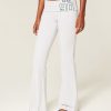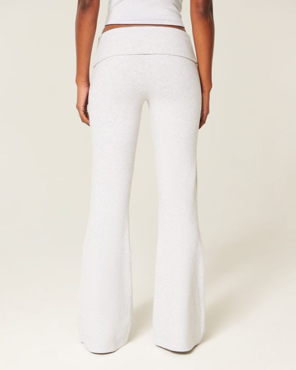 Super soft fleece pants with a mid-rise foldover waist featuring a number graphic. Flared hem. Imported.