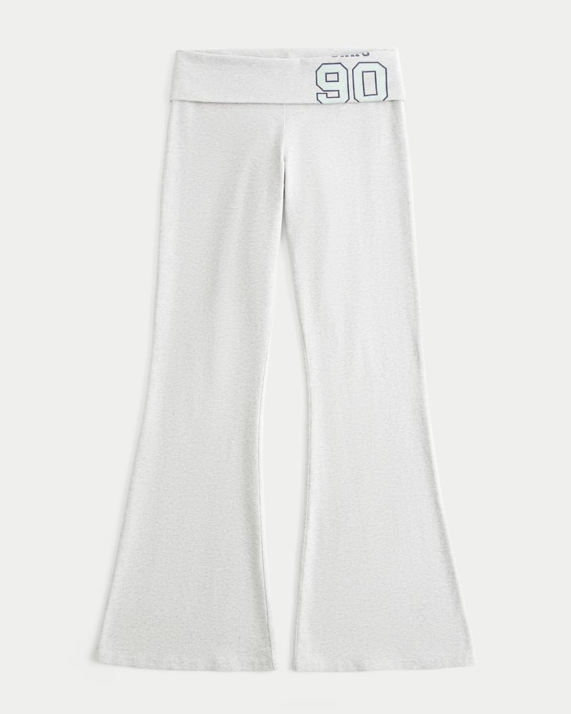 Number Graphic Foldover Waist Flare Pants