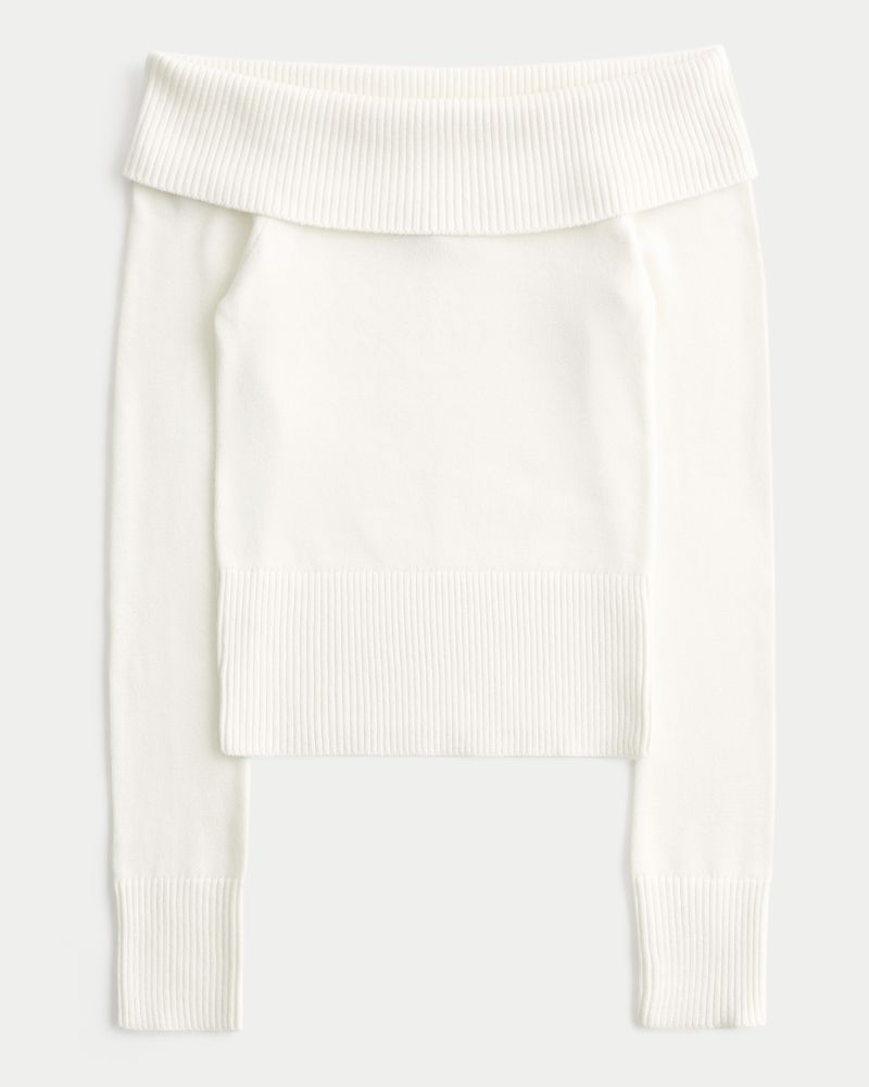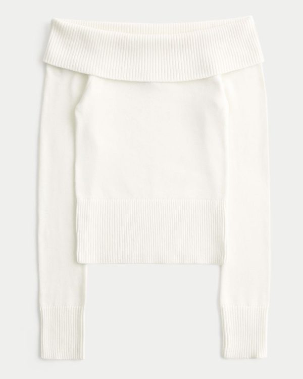 A cozy and super soft sweater in a stretchy cotton blend. Foldover off-the-shoulder neckline, long sleeves, ribbed trims. Slim Fit. Imported.