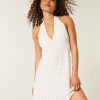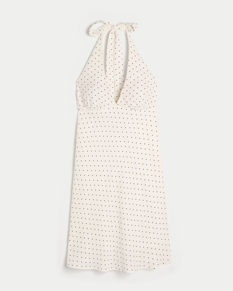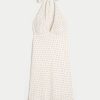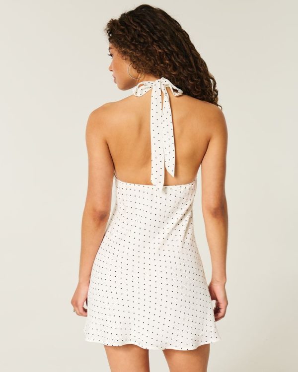 Flowy and super soft, this dress features halter straps, an open back detail and removable pads. Mini length, pretty crepe fabric. Imported.