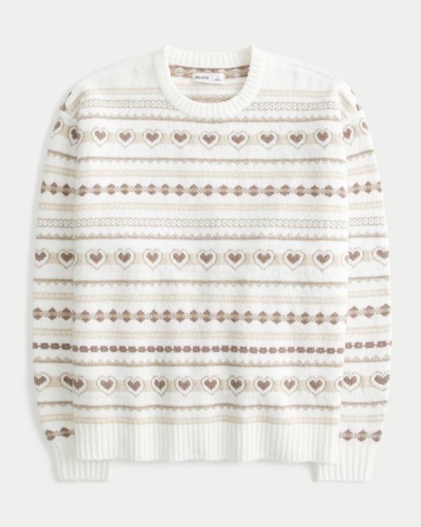 A super soft and cozy knit sweater featuring a classic heart pattern. Crew neckline, long sleeves, ribbed trims. Oversized Fit. Imported.