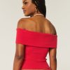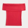Comfy and super soft, this ribbed top features a foldover off-the-shoulder neckline. Slim Fit. Imported.