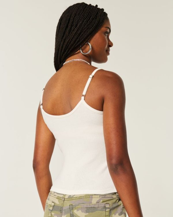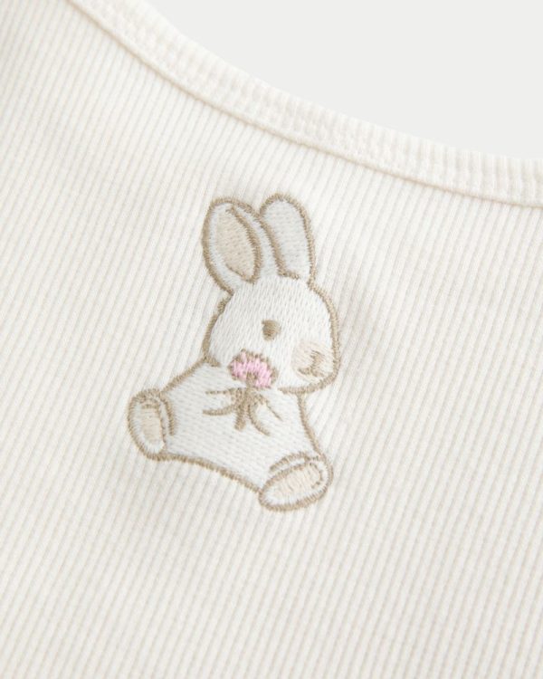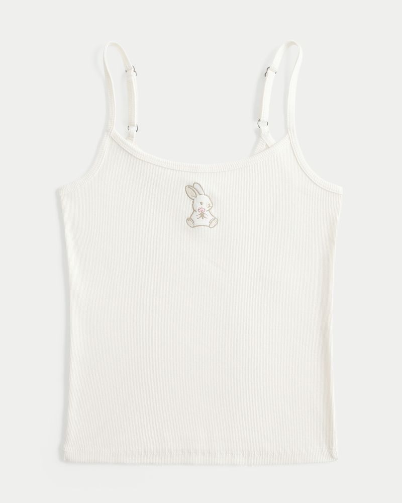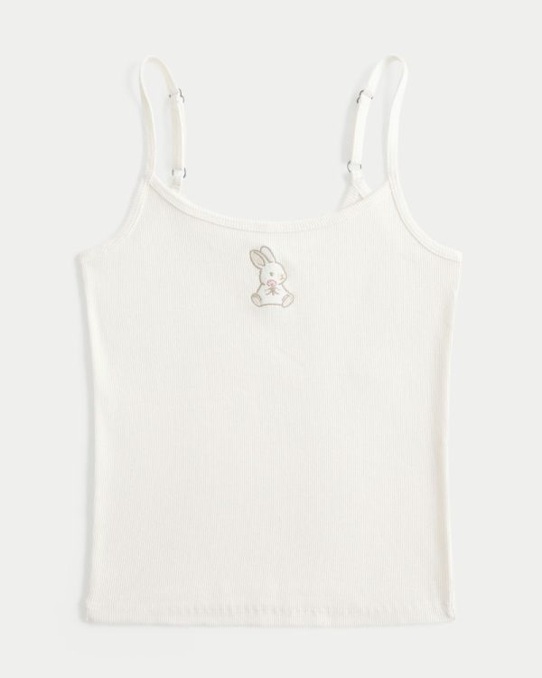 A super soft and comfy cami in ribbed fabric featuring a cute embroidered rabbit graphic. Adjustable straps. Slim Fit. Imported.