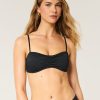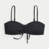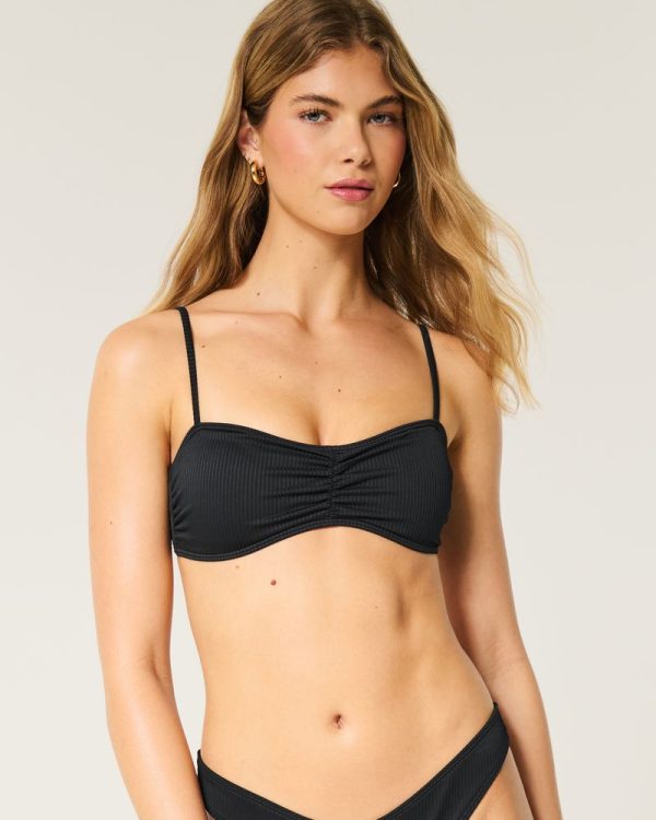 A super cute bikini top in soft ribbed swim fabric with a scoop neckline and cinched detailing at the center. Adjustable straps, tie back closure. Imported.