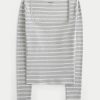 An ultra-soft and cozy long-sleeve top in ribbed fabric with a seamless look and feel. Square neckline, long sleeves. Slim Fit. Imported.