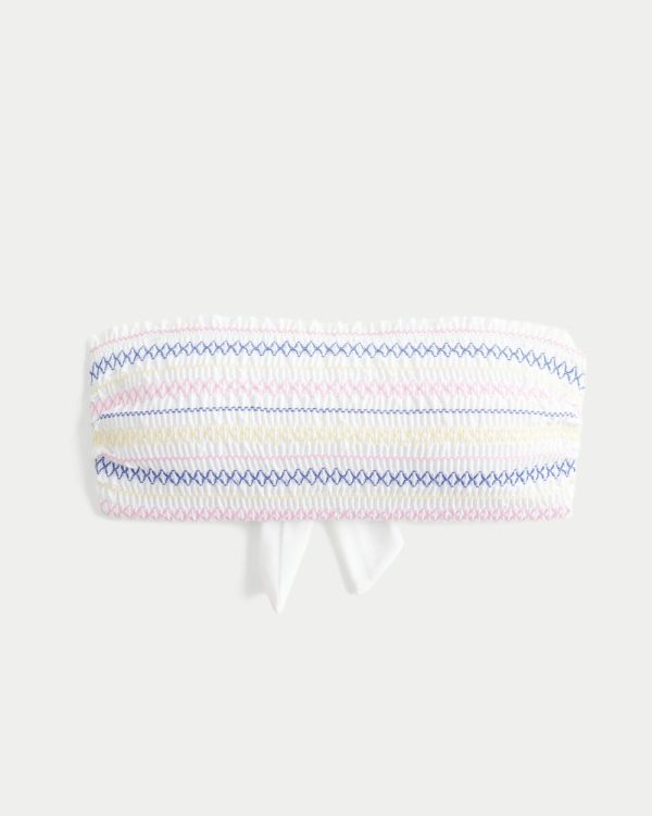 This cute bikini top is designed with a bandeau silhouette and features pop-color stitching. Soft smocked swim fabric, tie closure, removable padding. Imported.