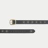 This cute faux leather belt features sunburst details with metal grommets. Metal buckle. Imported.