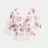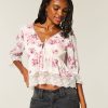 Flowy and super soft, this boho-inspired babydoll top has 3/4-length sleeves and a pretty lace hem with embroidered details. Center tie detail at neckline, soft smocked back. Looks perfect dressed up or down! Easy Fit. Imported.