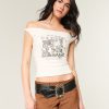 Twisted Off-the-Shoulder Velvet Valley Graphic Tee