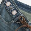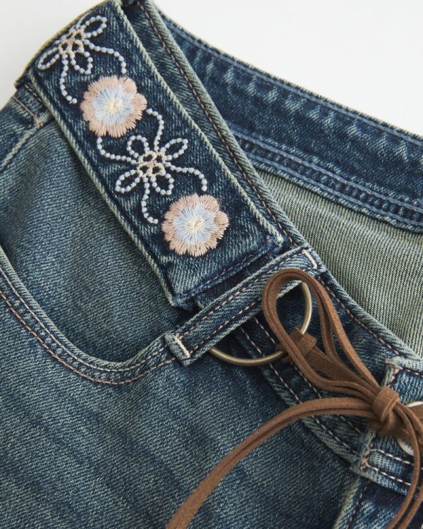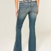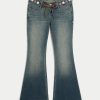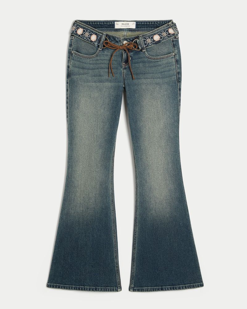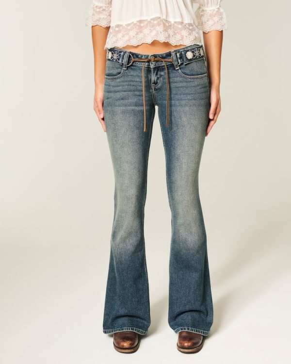 Women’s Ultra Low-Rise Embroidered Belt Medium Wash Flare Jeans