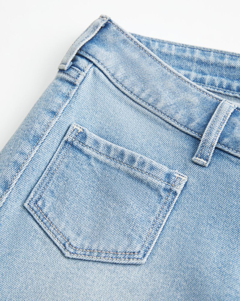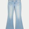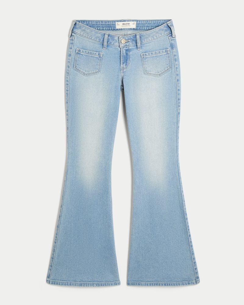 Ultra Low-Rise Light Wash Front Pocket Flare Jeans