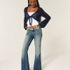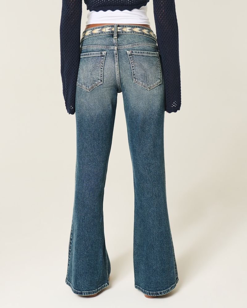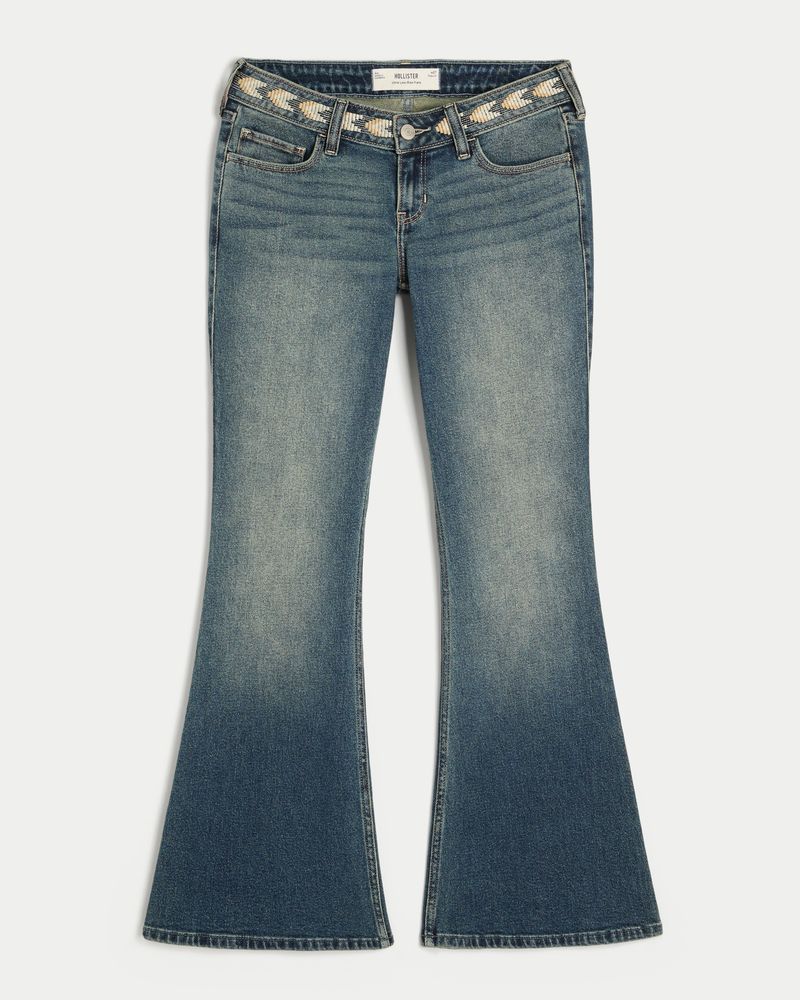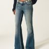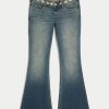 Ultra Low-Rise Medium Wash Embroidered Flare Jeans