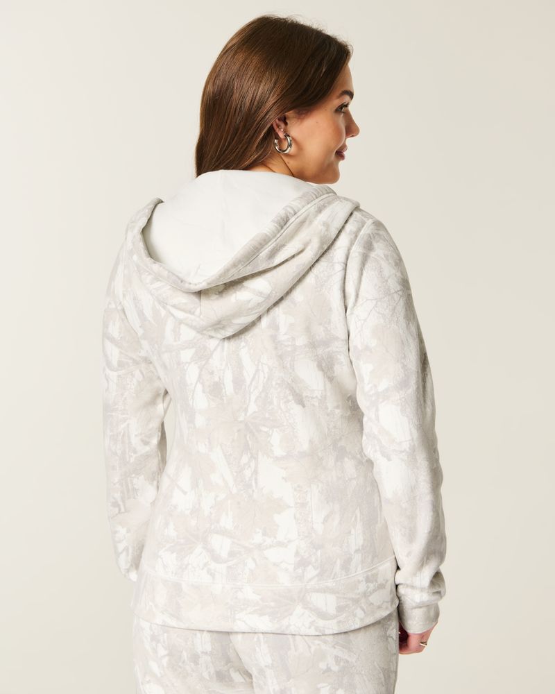 Cozy and super soft, this fleece hoodie features an all-over camo pattern and full zip-up closure. Front pockets, hood, long sleeves. Slim Fit. Imported.